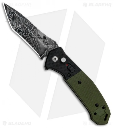 Bear OPS Mini Bold Action V Tanto Auto Knife Black/Green G-10 (3.25″ Damascus)