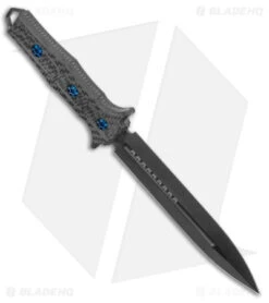 - Harpoon style blade made from CPM 10V steel with a black finish