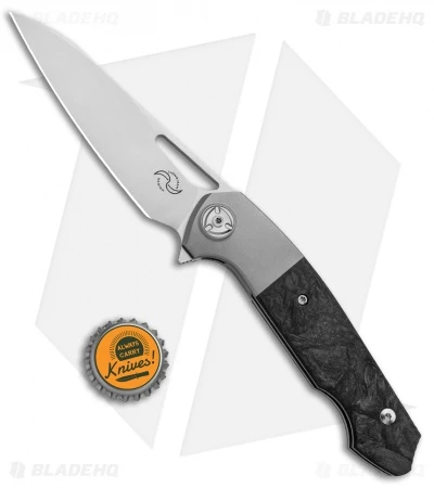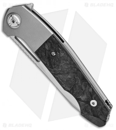 The Eraser flipper is a slim EDC design from Liong Mah Design. It has a titanium handle with a marbled carbon fiber overlay, leaving the bolster uncovered. It sports a Bohler M390 steel blade that has a strip of jimping along the spine. This impressive design is rounded off with a milled pocket clip, a hidden lanyard tube, and a milled backspacer.