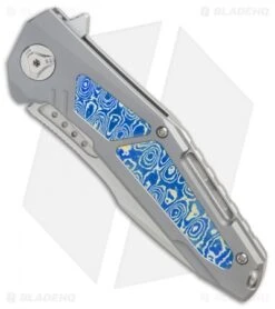 Reate Knives Reate J.A.C.K. Integral Knife Blue Ti/Marble Carbon Fiber (3.94″ Damasteel)