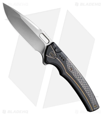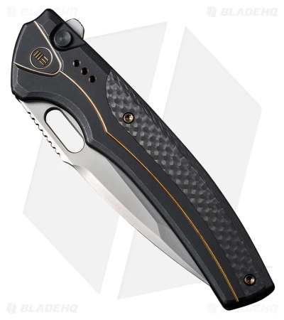 - Black and gold titanium and carbon fiber handle.